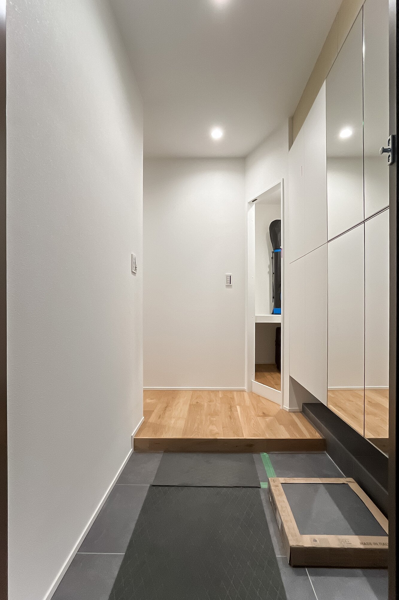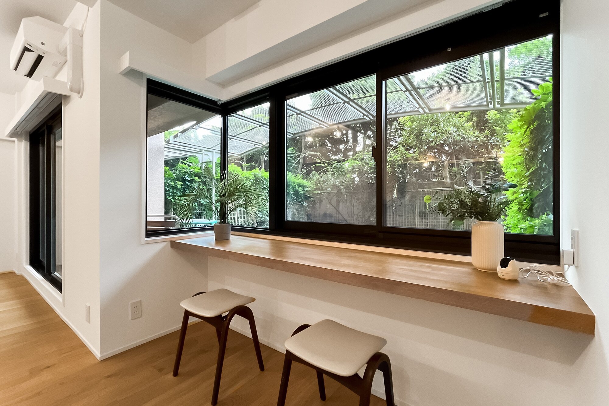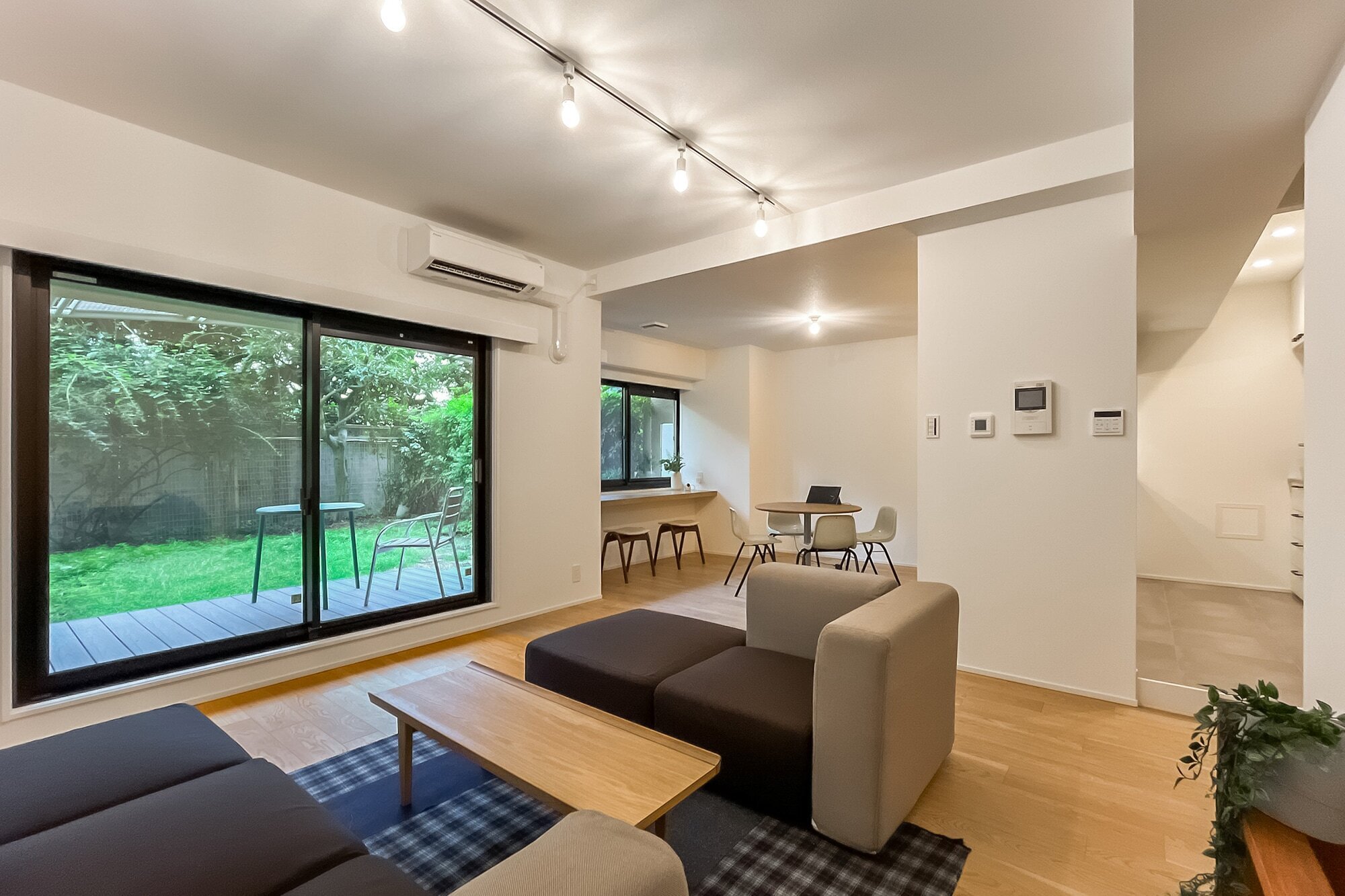 🌟 The private garden, brimming with greenery, is sure to create countless memories. Even the everyday weeding will surely be “priceless” when we look back on it! The layout and interior, with its many heart-warming touches, are also heart-warming. The hallways are long because of the space, but they double as desk space, gallery space, and storage—a wonderful touch. Being on the first floor means kids and dogs can run around without worry!