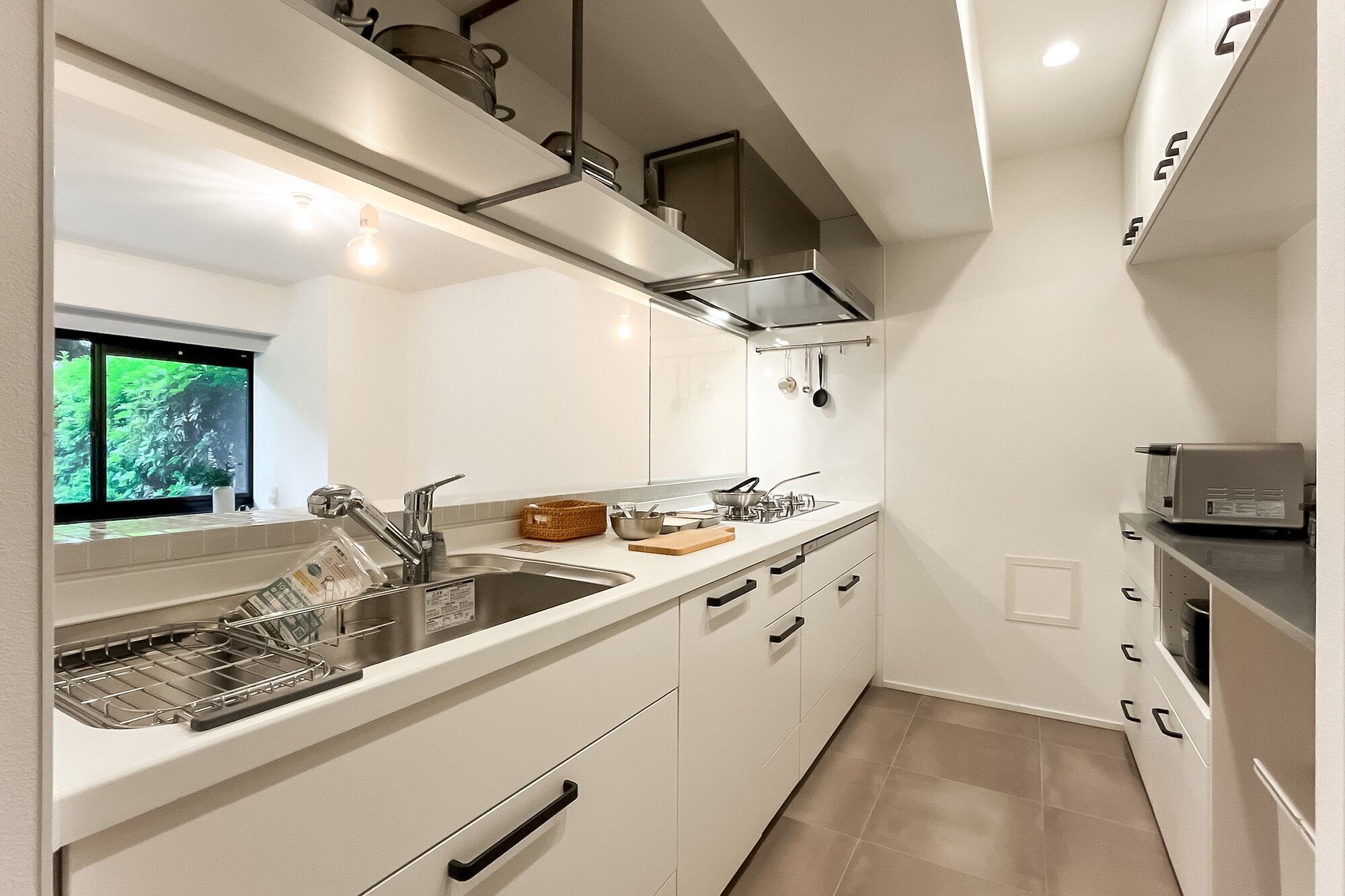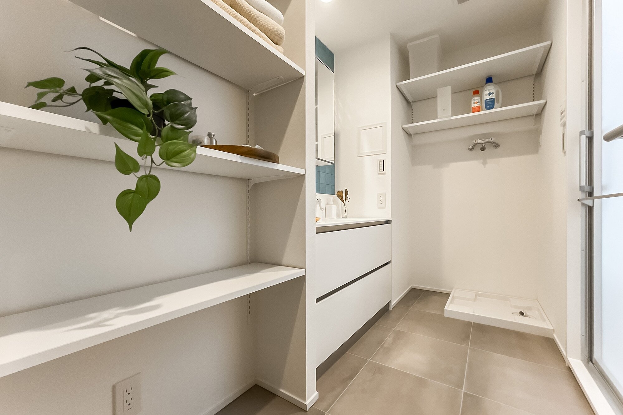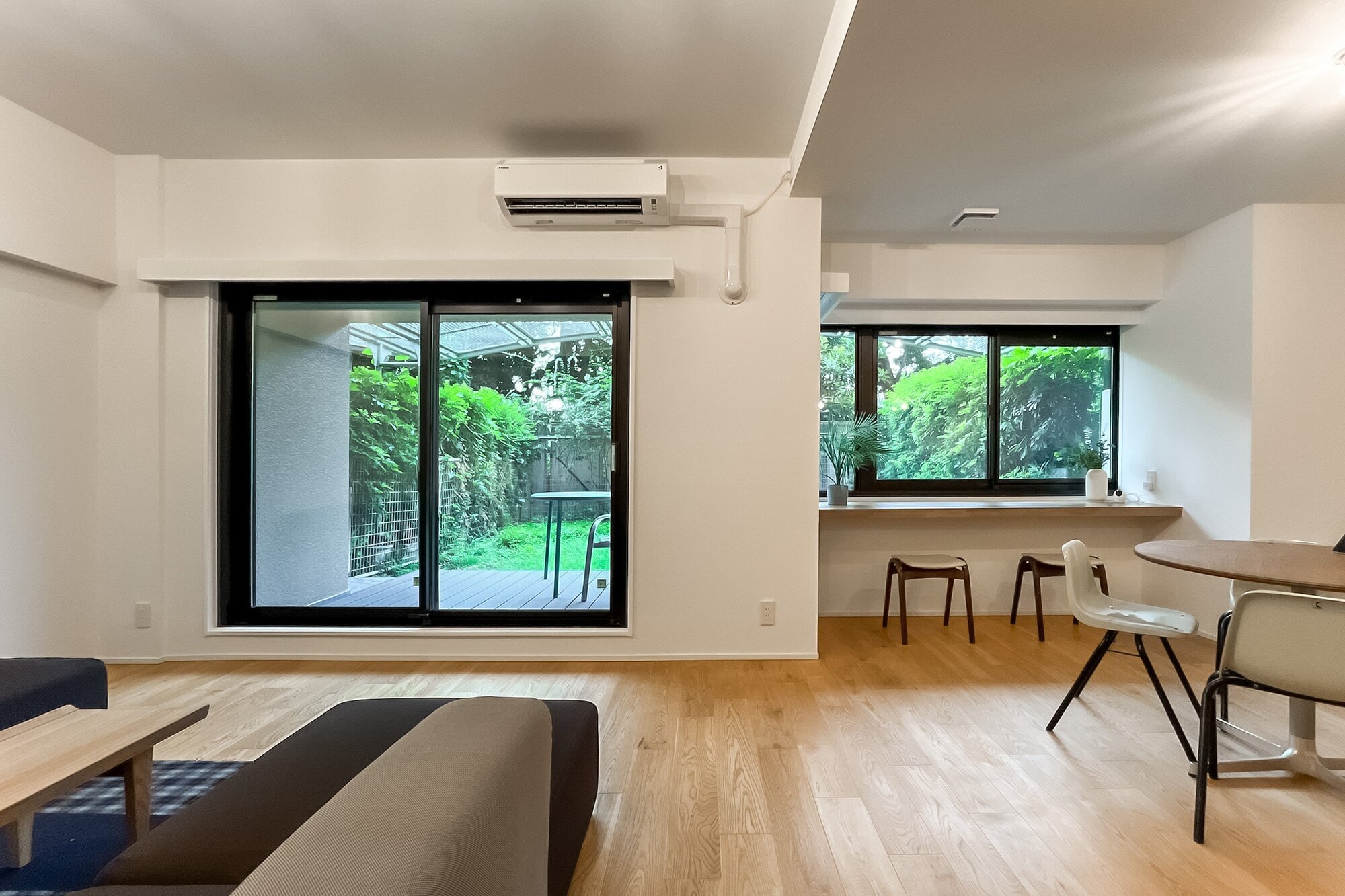 🌟 The private garden, brimming with greenery, is sure to create countless memories. Even the everyday weeding will surely be “priceless” when we look back on it! The layout and interior, with its many heart-warming touches, are also heart-warming. The hallways are long because of the space, but they double as desk space, gallery space, and storage—a wonderful touch. Being on the first floor means kids and dogs can run around without worry!