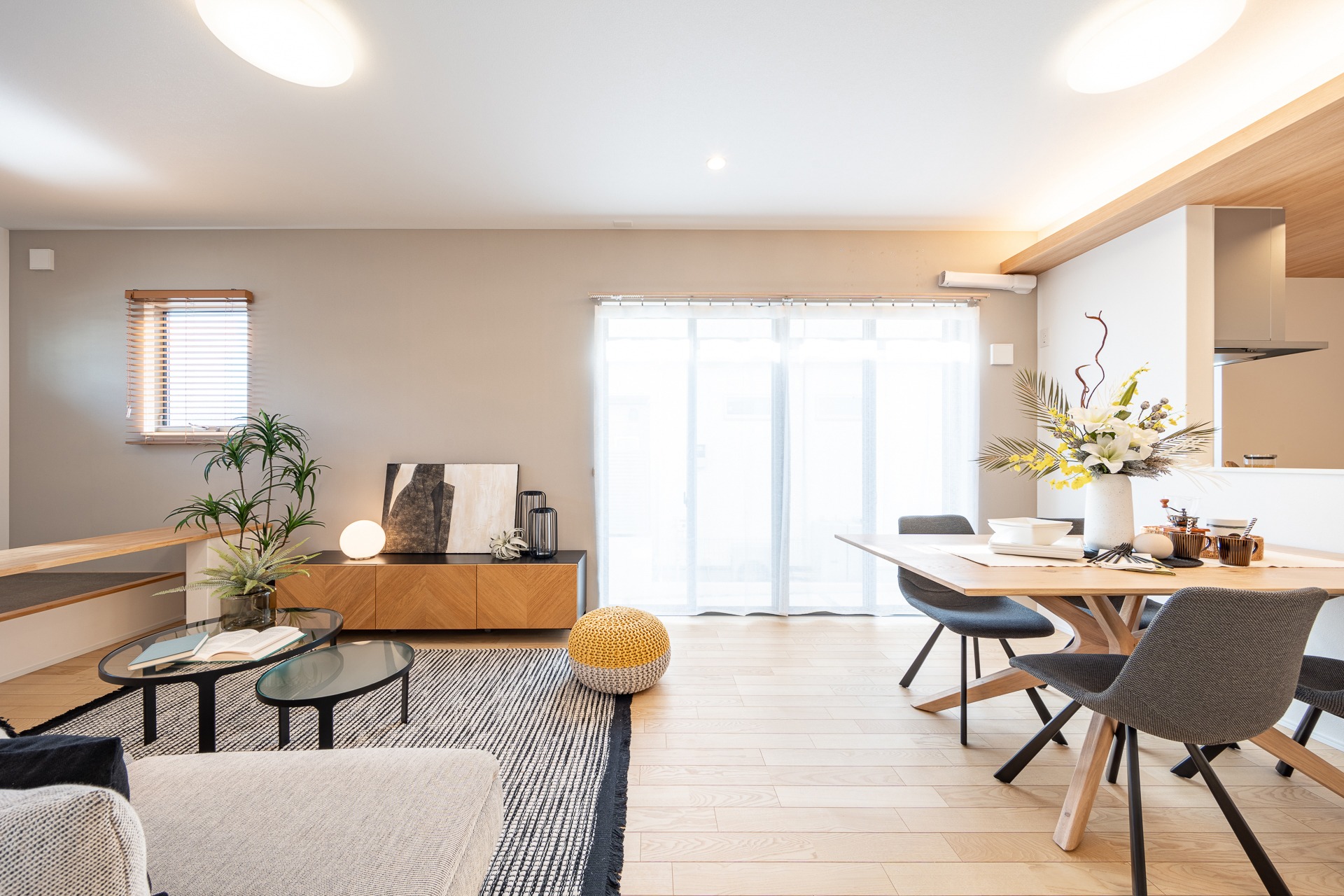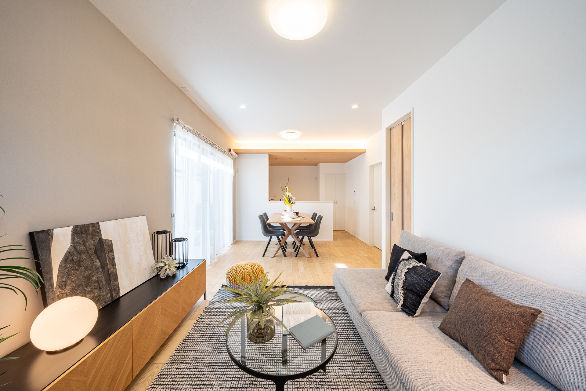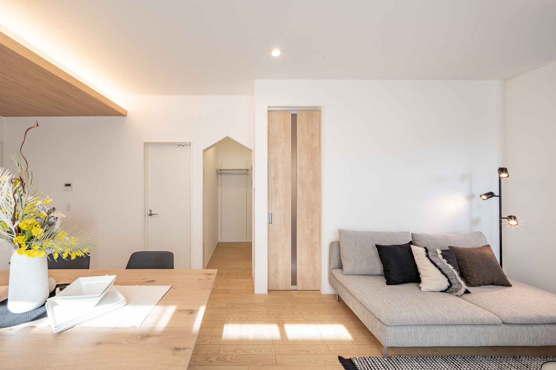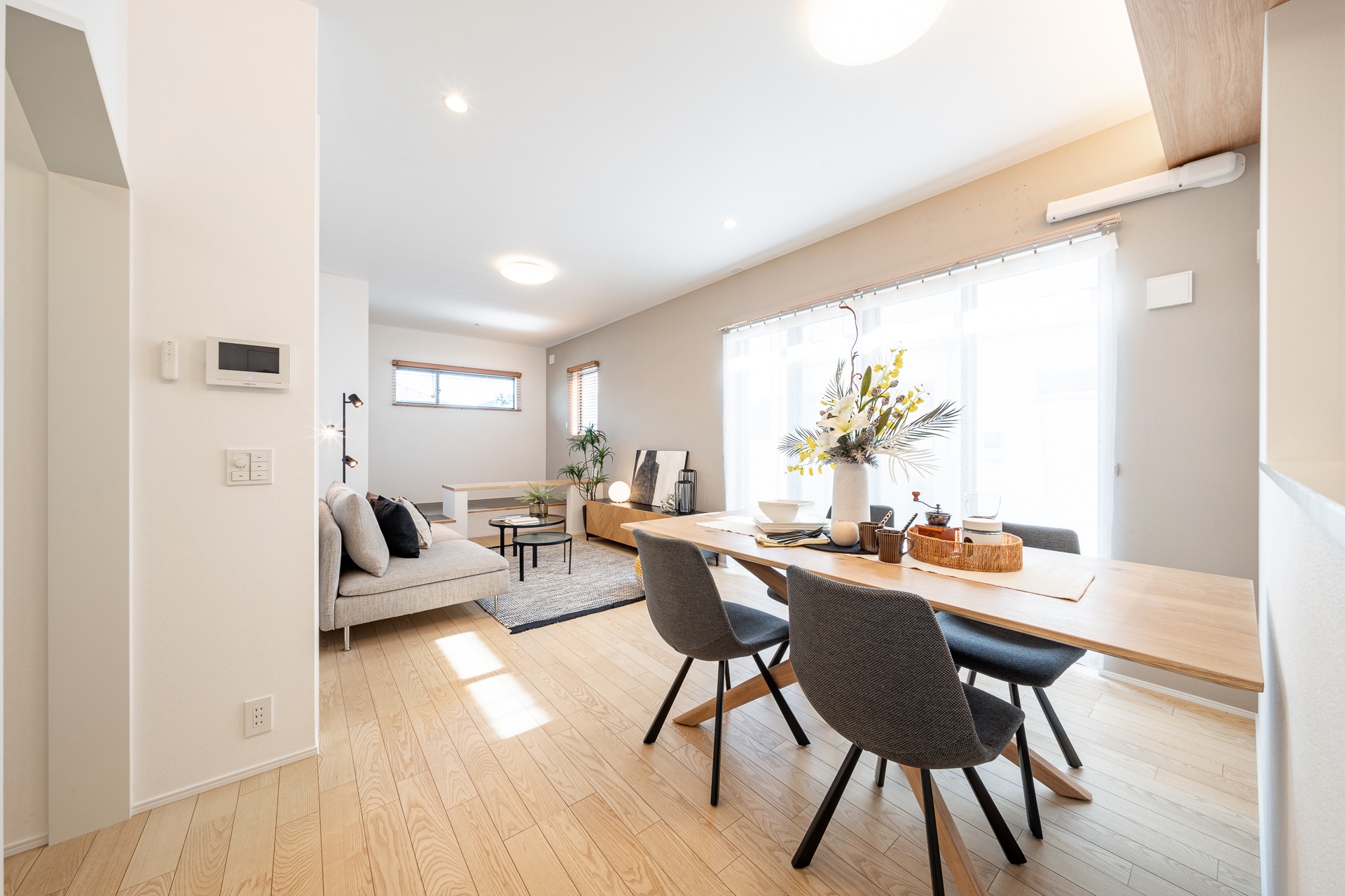 Phòng khách sáng, sàn gỗ