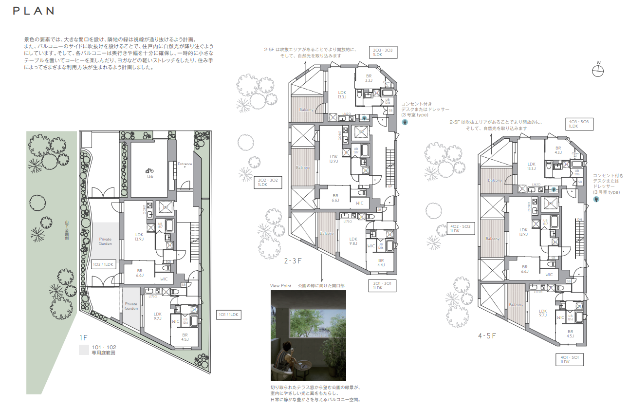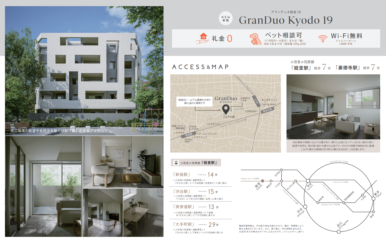 This property is currently under construction and is accessible from three stations: Kyodo Station and Gotokuji Station on the Odakyu Line, and Yamashita Station on the Setagaya Line. The surrounding area is surrounded by greenways and parks, and the design takes advantage of the lush greenery, sunlight filtering through the trees, and the breeze. Three apartment plans are available, each offering a comfortable living space that makes the most of light and breezes. All apartments feature comfortable balconies* with ample depth and width, creating a relaxing space.