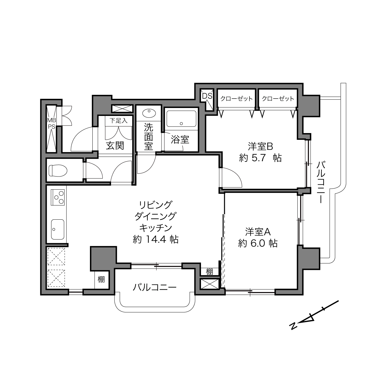 - 2 phòng ngủ (2K,2DK,2LDK)