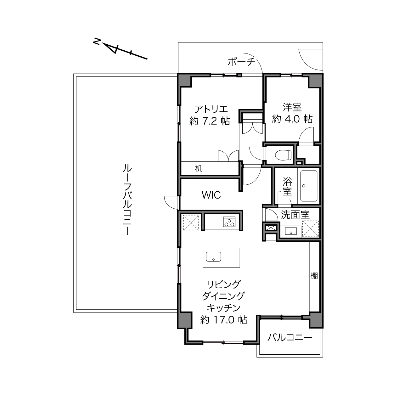 🌟 Rather than a 2LDK, this home is best described as a “1LDK + Studio + Walk-in Kitchen” combination. It features a relaxing living/dining/kitchen area and a special, tiled studio space, all connected by a large roof balcony. This layout adds structure to your life and allows you to comfortably switch on and off work. This is especially recommended for those who work from home or those with creative jobs!