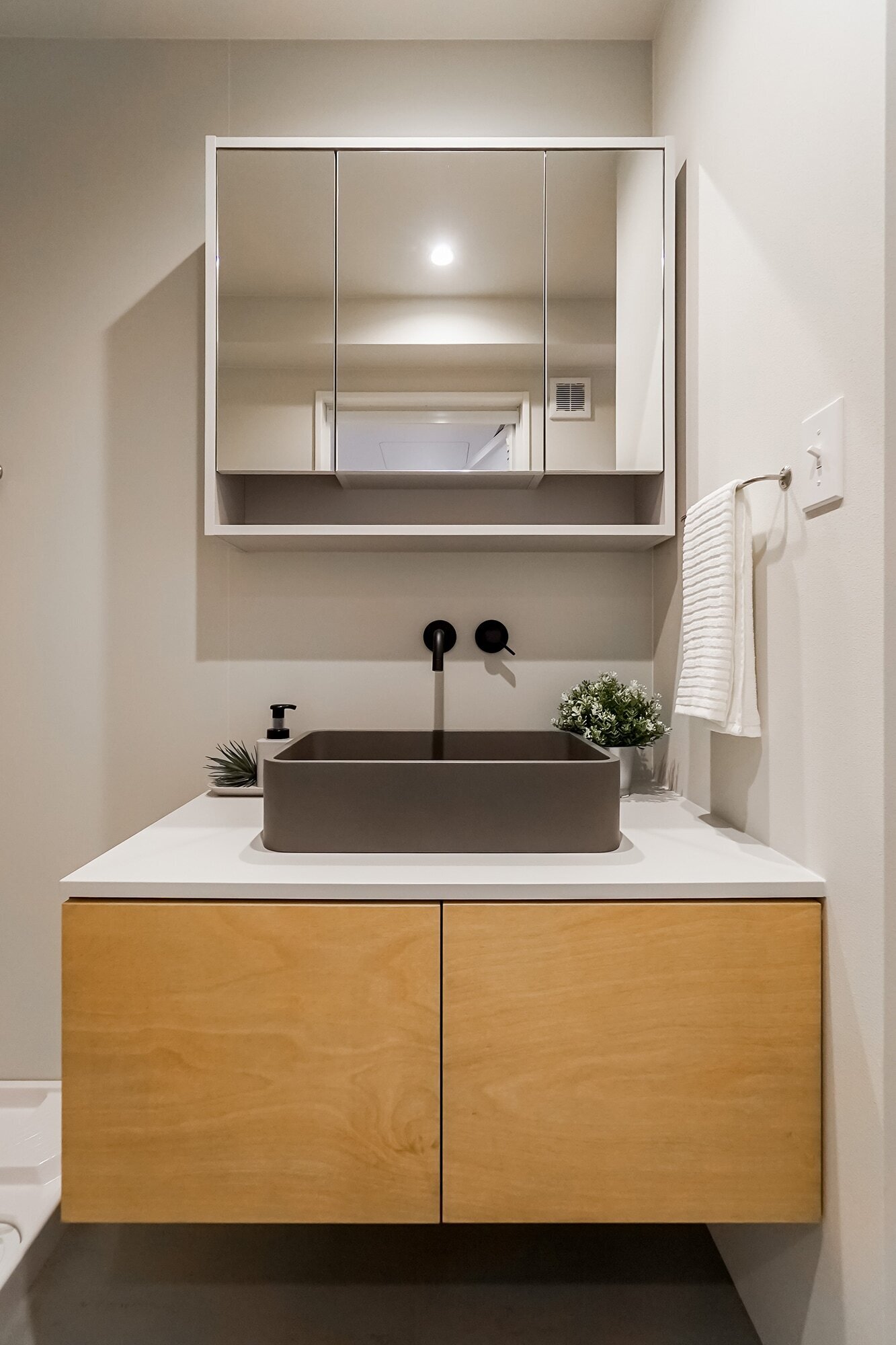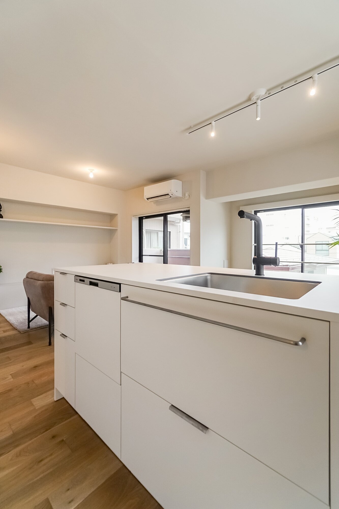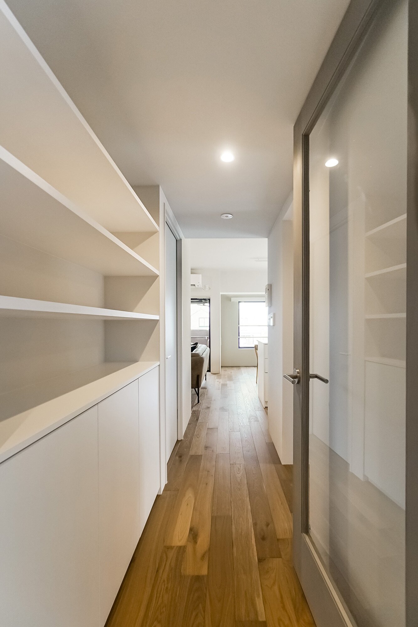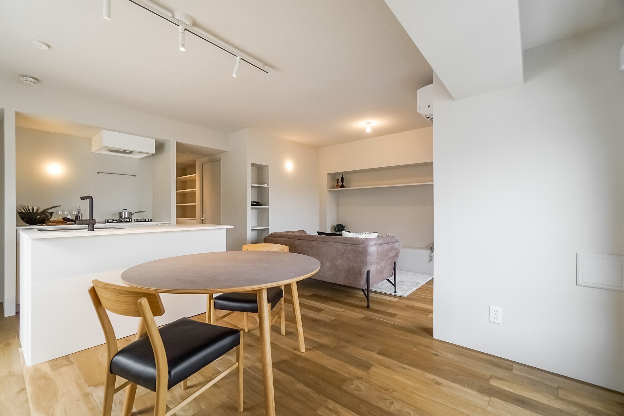 🔥The spaciousness of the lobby and the cozy feel of the living/dining/kitchen area, with natural light from two sides, are appealing, but another great feature we discovered on-site was the abundance of storage space. In addition to the large storage space in the hallway, there is storage space provided throughout, giving the impression that livability has been taken into consideration. And yet, without using standard fittings that clearly indicate “it’s all about storage,” the overall space has a clean, streamlined impression, which is impressive. The interior is casually constructed without baseboards, and you can feel the attention to detail in the design.