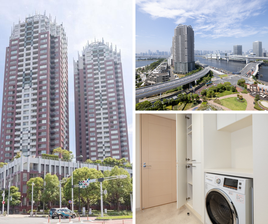 “THE TOWERS DAIBA” is a 33-story tower apartment building located approximately a 3-minute walk from Odaiba-Kaihin Koen Station on the Yurikamome Line.